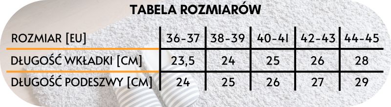 Przy doborze rozmiaru prosimy kierować się tabelą umieszczoną poniżej.
