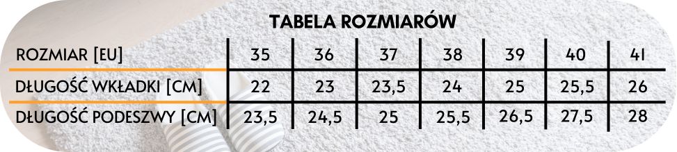 Zastosowana podeszwa styrogum jest lekka i elastyczna, a jej grubość 2,3 cm pod piętą zapewnia wygodne podparcie, lepszą izolację i komfort podczas chodzenia. Kapcie sprawdzą się zarówno na co dzień, jak i jako praktyczny prezent – łączą ciepłe wnętrze, trwałe materiały i kobiecy detal.